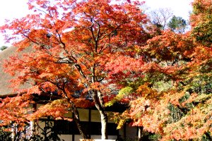 <コメント> 12月の初めというのに、おだやかな陽差しをあびてポカポカ、春のようです。北鎌倉駅を降りると、すぐ目の前の円覚寺に向かっている人の波。紅葉見物にきた人々でいっぱいです。真っ赤に紅葉している総門のあたりも、見物の人とカメラマンとでごったがえしています。総門をくぐると先日サザンがコンサートをしていた山門、仏殿の脇から妙香池へと向かうあたりも素晴らしいまっ盛りの紅葉、ついついカメラのシャッターを切ってしまいます。拝観できない正伝庵への道は、散った銀杏の葉で黄色に埋め尽くされていますし、見上げれば太陽の陽を浴びた紅葉の葉が、あざやかな赤に光っています。人の流れにのって境内の奥へと進み、仏日庵、黄梅院と庭を見せていただきました。山門の方へ戻ってくる途中の書院の後ろに紫色の小さい花が絨毯を敷きつめたように咲いていました。ヒメツルソバの花でした。 東慶寺は素通りして、浄智寺へ。道路から奥へと入っていった受付で拝観料を払って中へと進みます。この浄智寺も寺域が背後の谷戸とよばれる谷合に深く延びているため、竹や杉の多い境内は禅寺にふさわしい閑寂なたたずまいがあって、なかなかいい雰囲気のお寺です。参道の途中から裏へぬけると、洞窟に弥勒菩薩の化身といわれる布袋尊がまつられていました。ぐるっと参道を回って出口の近くに、また見事に紅葉した葉が真っ赤に染まっていました。(写真右)横須賀線の線路を渡って鎌倉駅方向へ歩いていくと、建長寺です。総門をくぐって中へはいると、正面の法堂から方丈のあたりは数本の木が真っ赤になっている程度。半僧坊へ至る左側の参道を進んでいくと、ありました。見事な紅葉が。石垣の上にある何本もの古木が、陽ざしを受けて真っ赤に輝いているようです。天源院への石段をのぼっていくと、この紅葉を角度を変えて見ることができます。(写真下左) 紅葉を堪能したあとは、方丈へもどります。靴を脱いで方丈に上がり、回廊を回っていくと、禅寺を象徴する心の形の池を中心にした庭を見ることができます。紅葉見物の人々はあんなに大勢いたのに、ここには数人だけ。静かに庭園を眺めてきました。 鶴岡八幡宮で、黄色に色づいた樹齢1000年ともいわれる大銀杏を太鼓橋のあたりから見て、東鳥居から境内を出ます。鎌倉宮の方へと向かう途中、頼朝の墓の手前にある白旗明神の大銀杏も負けず見事です。ちょっと寄り道をしないと見ることはできませんが、この時期には是非見てほしいと思えるすばらしさです。 円覚寺、建長寺、そして八幡宮の見物客の多さにくらべ、鎌倉宮の静けさはおどろくほどです。紅葉のすばらしさは他の寺社にもひけをとらないのに・・・と不思議なくらい。紅葉の葉の赤色の濃さは一番ではないかと思います。(写真下右) ゆっくりと鑑賞するには最高の場所で、鎌倉の中でも気に入っているお寺のひとつです。