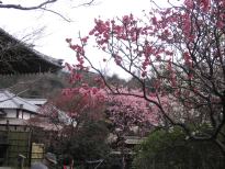 鶴岡八幡宮にお参りしたあと、宝戒寺へ。「萩の寺」として有名ですが、見事な梅でも知られているので境内にはやはり大勢の人がいます。やはり目につくのは大きな「しだれ梅」、見事なまでにびっしりと花を咲かせています。また正面の本堂の右手には何種類もの紅梅・白梅が咲きほこっています。赤、濃いピンク、うすいピンク、白とこれはまたすばらしいものです。境内をぐるっと回ると、今度はいろいろな種類の椿の花が見られます。入り口に戻ると「しだれ梅」の向かいに「思いのまま」と名づけられた1本の梅、紅梅と白梅が同じ木の中に混ざって咲いているのです。