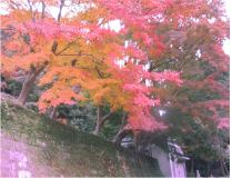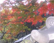 亀ケ谷坂へと続く道の角に長寿寺があります。このお寺は拝観できないのですが、門から見える庭園はいつも手入れがされていて気に入っています。先ごろ続いていた工事も終わり、境内が整えられている中、きれいな紅葉が咲いています。 横須賀線の踏切を渡ると、浄智寺で、門前の苔むした小さな石橋が昔の面影をしのばせるようです。裏の庭を見たり、布袋様の石像をなでたりと静かな境内をぐるっと1周してくると、出口の手前、左奥に見事な紅