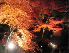 先へ進むと東慶寺です。四季おりおりの花が咲いているお寺ですが、さすがにこの時期はちょっと花が少ないようです。しかし、石段を上がった門からうしろを振り返ってみる景色や、静かな雰囲気の境内はいいものです。一休みということですぐ脇にある喫茶室へ。おいしいコーヒーと紅茶で冷えた体を温めてから、また歩き出します。 すぐに線路を渡って円覚寺へ。門前から真っ赤な紅葉が鮮やかです。近くで見るとまだ緑の葉もあり、見頃が例年より遅れているようです。夕方になってきたのでさすがに人の数も少なく、かえってゆっくりとみることができます。鎌倉のなかでも1,2といわれる紅葉の名所のこのお寺には、毎年のように紅葉見物に訪れています。それでも真っ赤に染まった紅葉は見事としかいいようがありません。閉門の時間を過ぎてもゆっくりと散策できました。 今日の一番の目的は、長谷寺のライトアップです。鎌倉駅へもどり、江ノ電で長谷へ。長谷寺の近くまでくると、真っ暗な中に照明に照らし出された紅葉が浮かび上がっています。1時間限りのライトアップですが、拝観料が無料というのもうれしいものです。ぞろぞろ続く人の流れにのって境内へと入ります。庭池の周りは大勢の見物客でいっぱい。やっと庭池のそばまでたどりつくと、さすがに「おおーっ」と声がでるほどすばらしい。暗闇から浮き上がっている紅葉と照らされた池に映っている紅葉。いつまでも見ていたいくらいです。庭池をぐるっと回ってから石段を上がり、観音堂に安置されている日本一大きい十一面観音像にお参りしました。いつもは昼間の明るいうちに見ている庭も、夜となるとまた違う印象です。短時間しかいられないのがとても残念に思えました。 きょうは万歩計を忘れてしまいました。 |